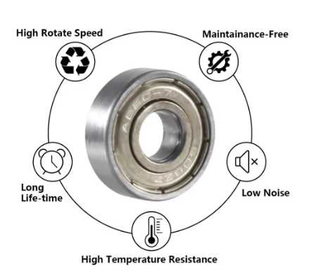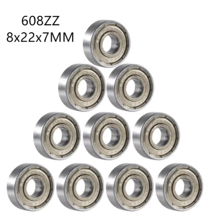 Rodamiento 608ZZ de una sola fila con doble escudo metálico, fabricado en acero alto carbono. Diseñado para aplicaciones de movimiento lineal y rotativo en impresoras 3D FDM, especialmente en ejes X, Y y sistemas con poleas o ruedas.